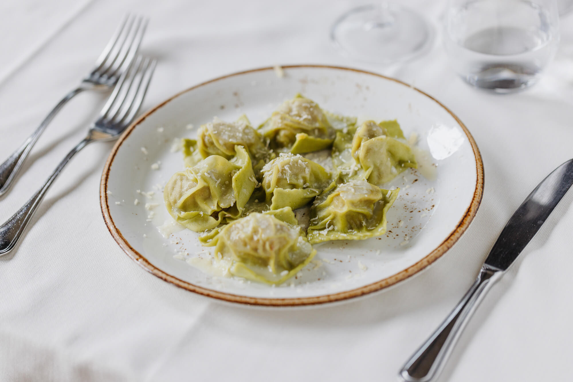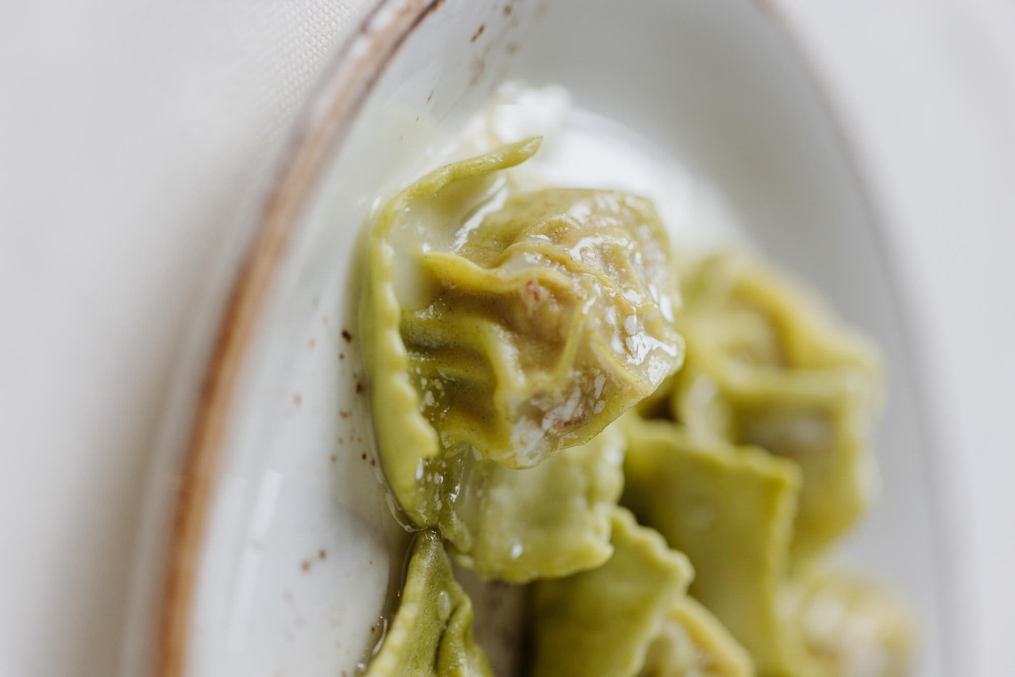 In questo piatto la sfoglia all’uovo diventa verde per l’aggiunta di erbette nell’impasto e avvolge un ripieno ricco e deciso a base di spalla cotta, accompagnata dalla dolcezza della ricotta.